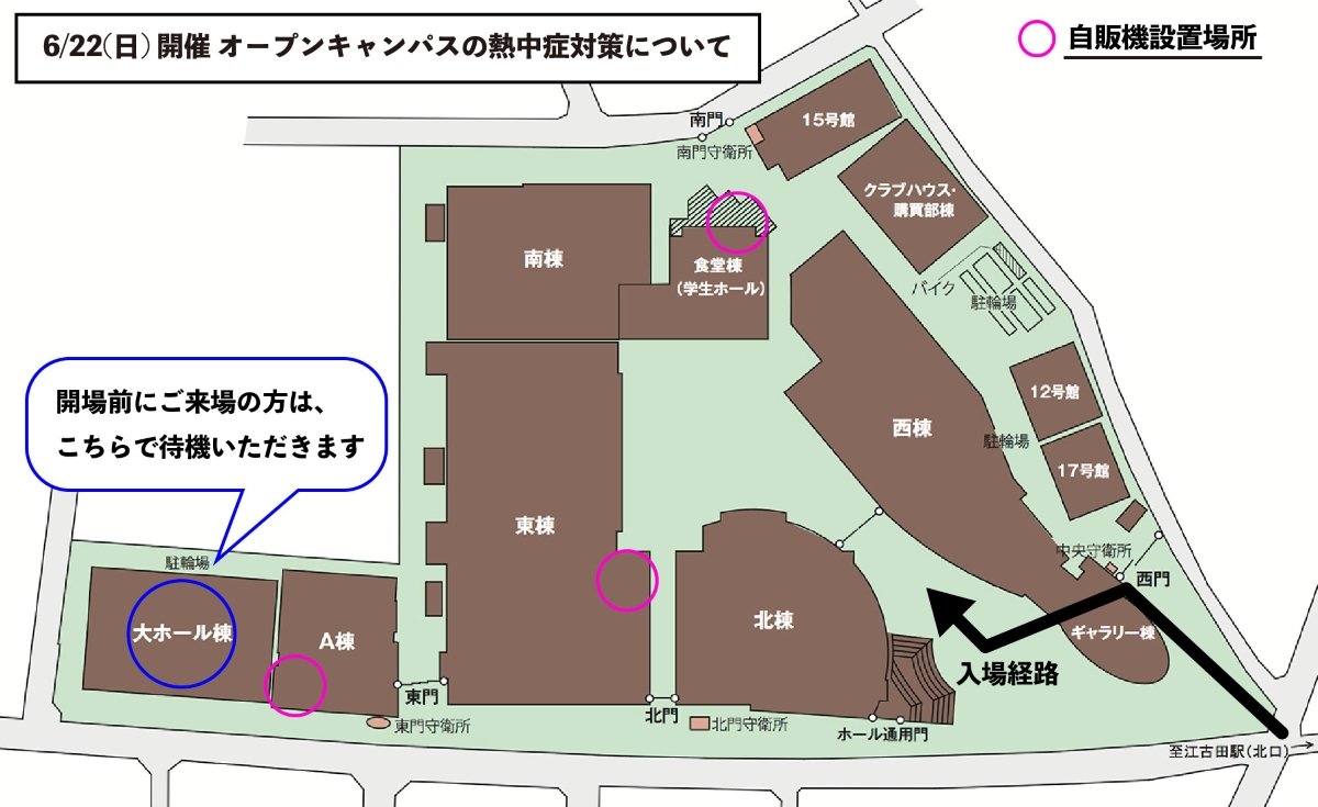 6/22(日)開催 オープンキャンパスの熱中症対策について