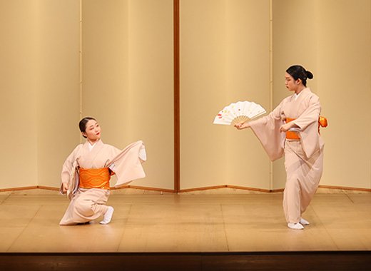 - 舞踊の理論と歴史を学びながら、舞台表現者としての基礎を身につけます。それとともに日本舞踊の古典技法の基礎を習練し、創作法も学んで、自分たちで創作した作品を舞台で発表します。